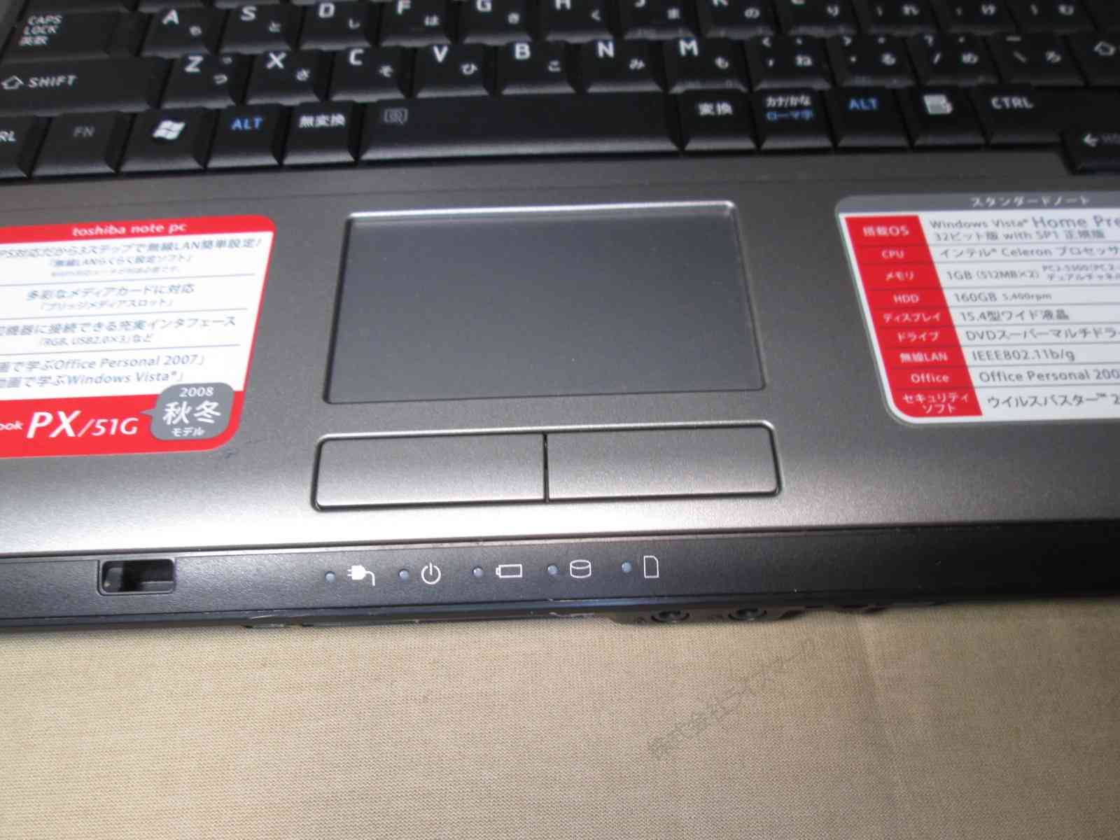 | OSプロダクトキー | あり(WindowsVista Home Premium) |