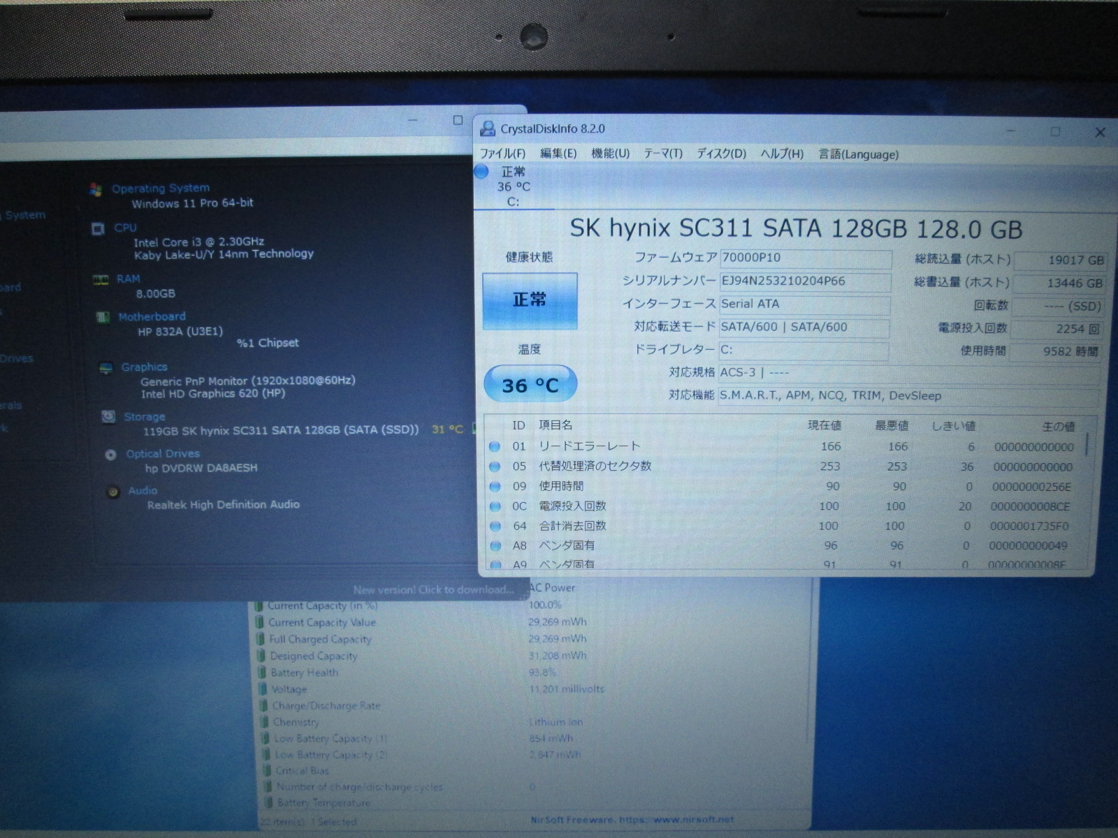 | バッテリー状態 | 新品時と比較して 93% の性能。 (BatteryInfoViewで表示された参考値であり実際の容量・充電可否は保証対象外) |