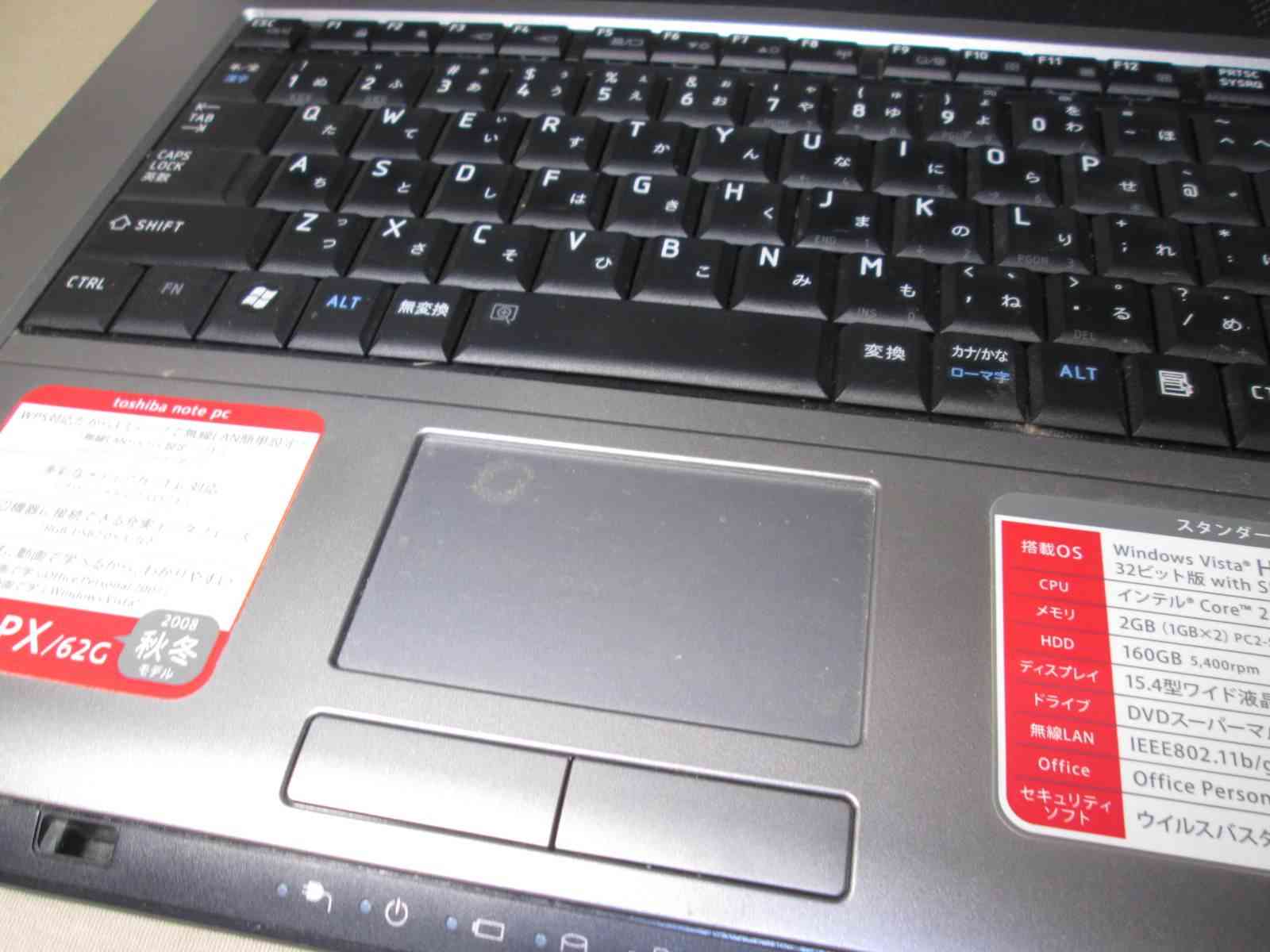 | OSプロダクトキー | あり(WindowsVista Home Premium) |