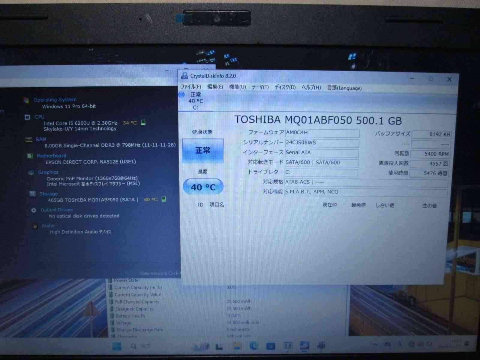 EPSON Endeavor NA512E【Core i5 6200U】 【Windows11 Pro】MS 365 Office Web/Wi-Fi/USB3.0/HDMI [91819]