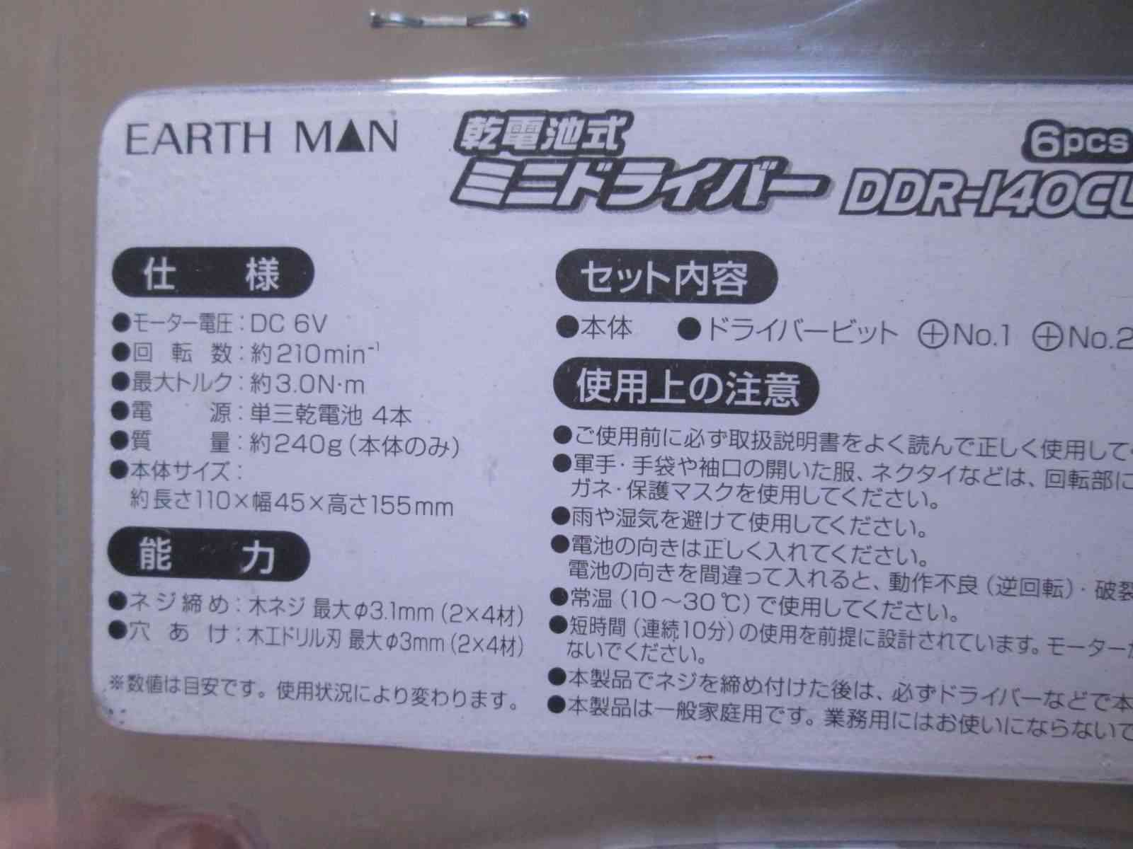 | 商品名 | EARTH MAN 乾電池式 ミニドライバー DDR-L40CL |