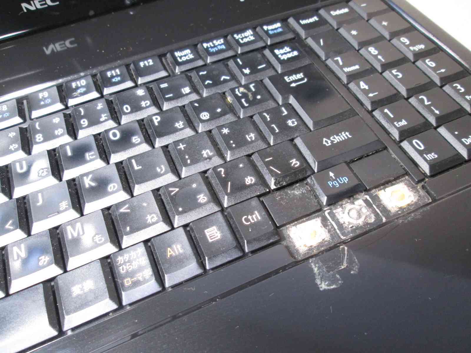 | キーボードの破損 | キートップ数ヶ所欠品しています |