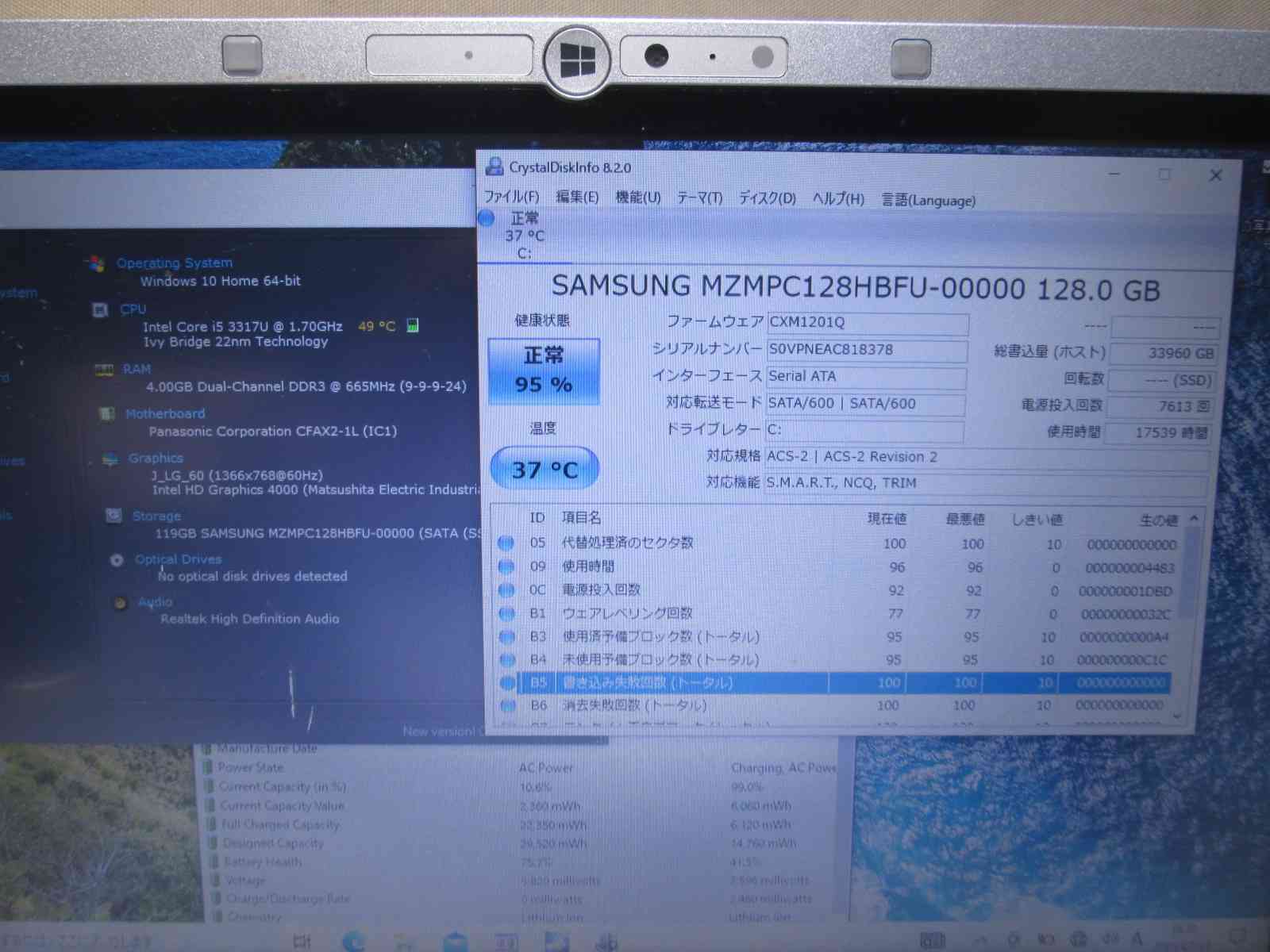 | バッテリー状態 | 新品時と比較して 41% の性能。 (BatteryInfoViewで表示された参考値であり実際の容量・充電可否は保証対象外) |
